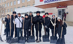 Студенты Щёлковского колледжа помогают службам в расчистке снега....