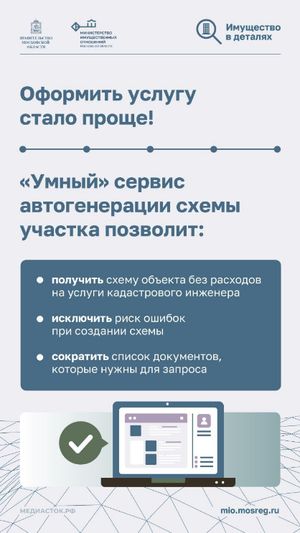 Запущен новый удобный сервис в рамках услуги по перераспределению земельных участков. Этот инструмент автоматически генерирует схемы земельных участков при заполнении электронного заявления на региональном портале госуслуг. Пользователь загружает файл с указанием координат границ участка, система самостоятельно формирует схему и включает её в заявку. Сервис минимизирует вероятность ошибок при подготовке документов и освобождает заявителей от затрат на привлечение кадастровых инженеров. Подробнее об услуге - в наших инфокарточках.