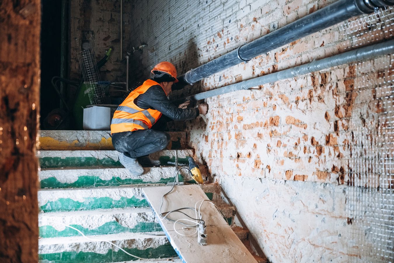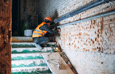 На сегодняшний день на объекте в полном объёме выполнен демонтаж, ведутся штукатурные и фасадные работы, в выполнении которых задействованы 28 человек.