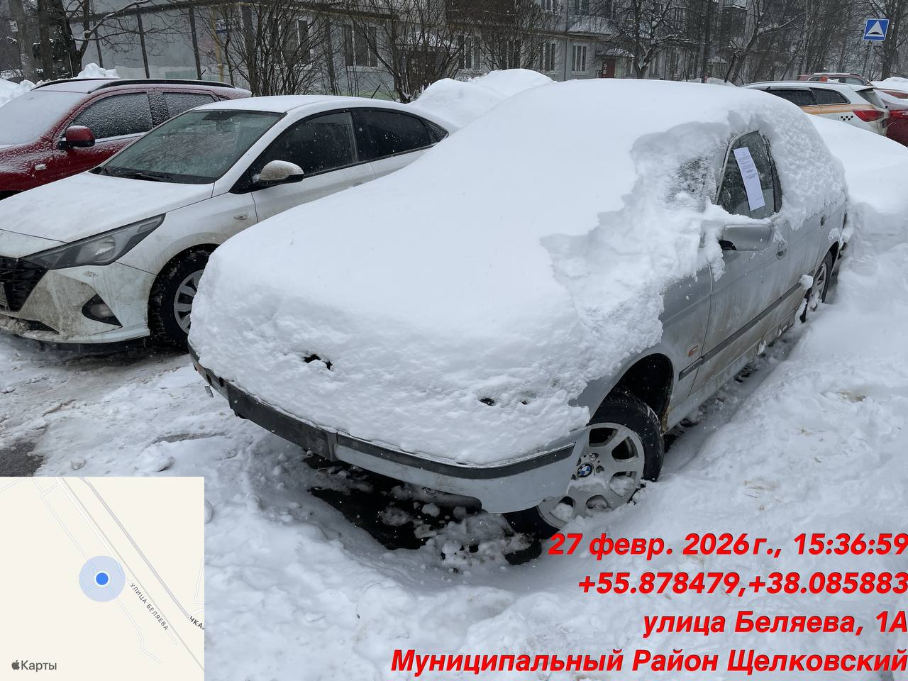- • г. Щёлково, ул. Беляева, д. 6а – транспортное средство «БМВ 523» цвет серебристый, гос. номер К 737 ТХ 190.