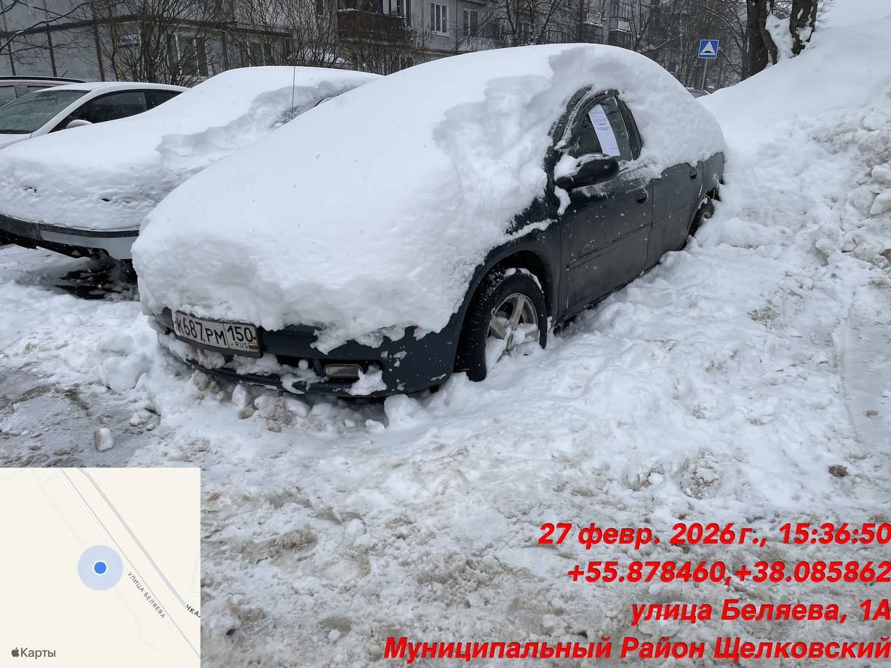 - • г. Щёлково, ул. Беляева, д. 6а – транспортное средство «Плимут Неон» цвет серо-синий, гос. номер К 687 РМ 150;