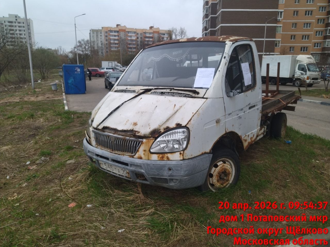 - • г. Щёлково, ул. мкр. Потаповский, д. 1 – транспортное средство «Газ 274712», цвет белый, гос. номер: Т545ТА 90.