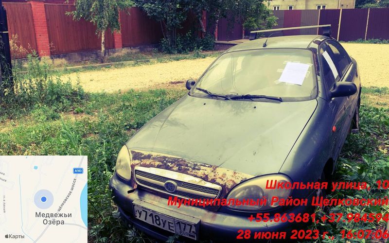 - г. о. Щёлково, д. Медвежьи Озёра, ул, Школьная, д. 25 - автомобиль марки «ЗАЗ СЕНС» цвет Серый, гос номер: У 300 УЕ 177.