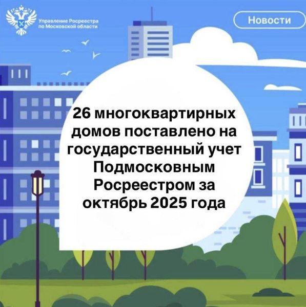 В октябре 2025 года на территории Московской области Управлением Росреестра по Московской области на государственный кадастровый учет поставлено 26 многоквартирных домов.