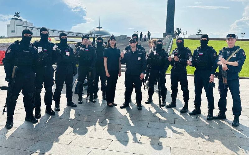 Щёлковские автоинспекторы передали браслеты коллегам на Поклонной горе.