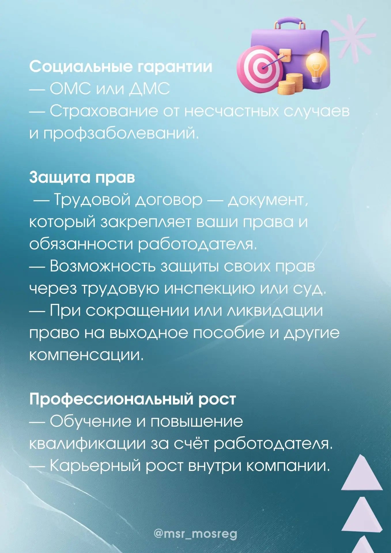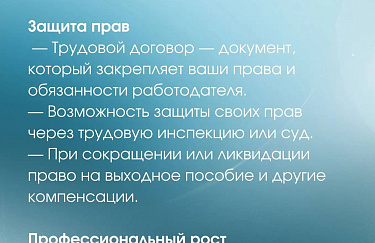 - • Возможность защитить свои права через трудовую инспекцию или суд