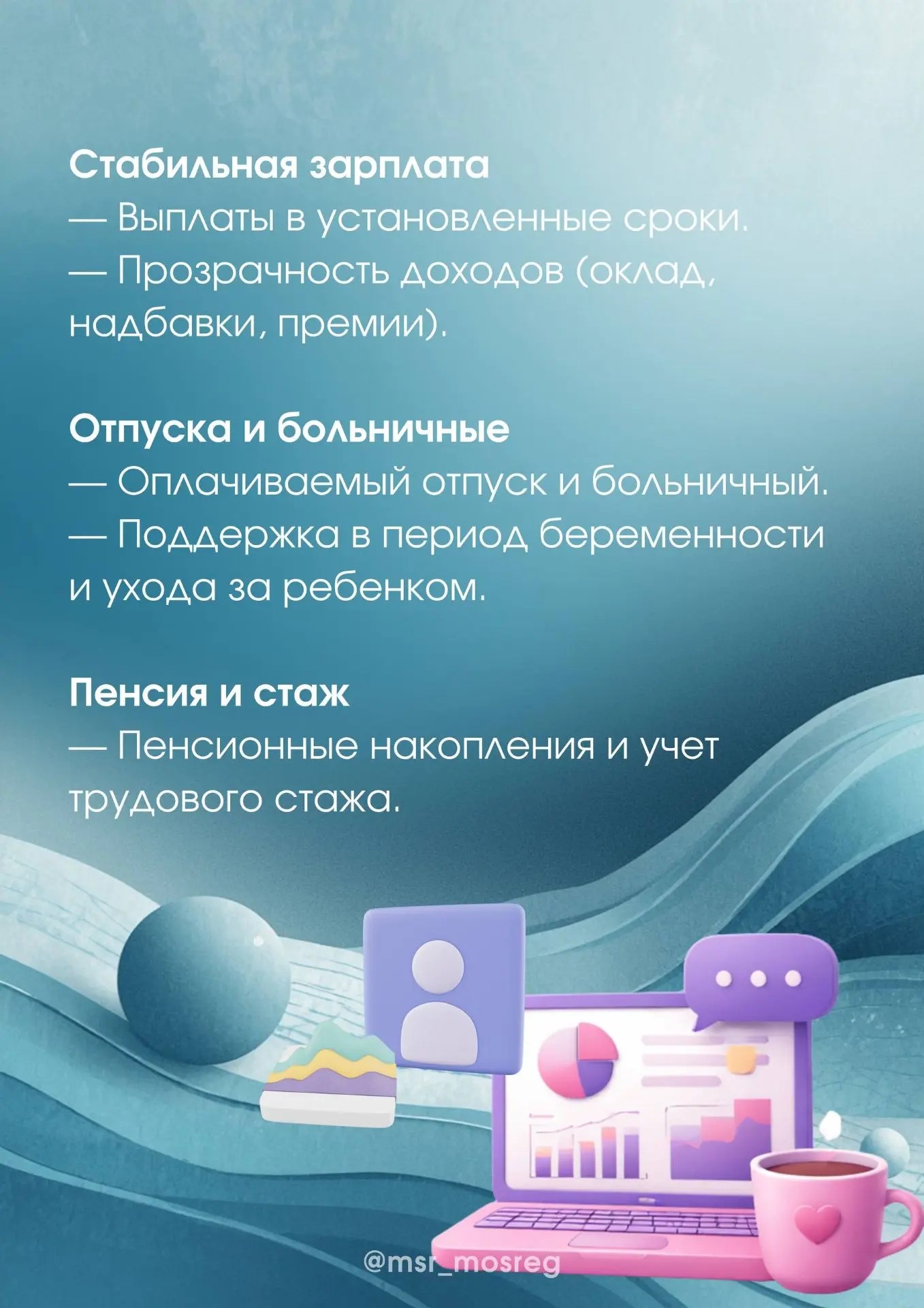 - • Оплачиваемый отпуск и больничный