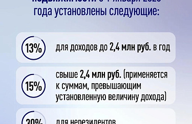 - • 13% - для доходов до 2,4 млн руб. в год;