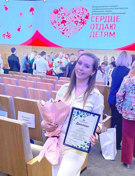 Мария Есина — педагог центра «Романтик». Она стала победительницей первого тура федерального заочного этапа Всероссийского конкурса профессионального мастерства «Сердце отдаю детям». Номинация: «Педагог дополнительного образования, работающий с детьми с ОВЗ и детьми-инвалидами».