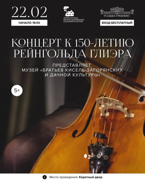Музей «Братьев Кисель-Загорянских и дачной культуры» представляет музыкальный концерт, посвящённый 150-летию со дня рождения русского композитора Рейнгольда Глиэра. Главным в своих сочинениях выдающийся маэстро считал мелодию, которая должна исходить только из сердца.